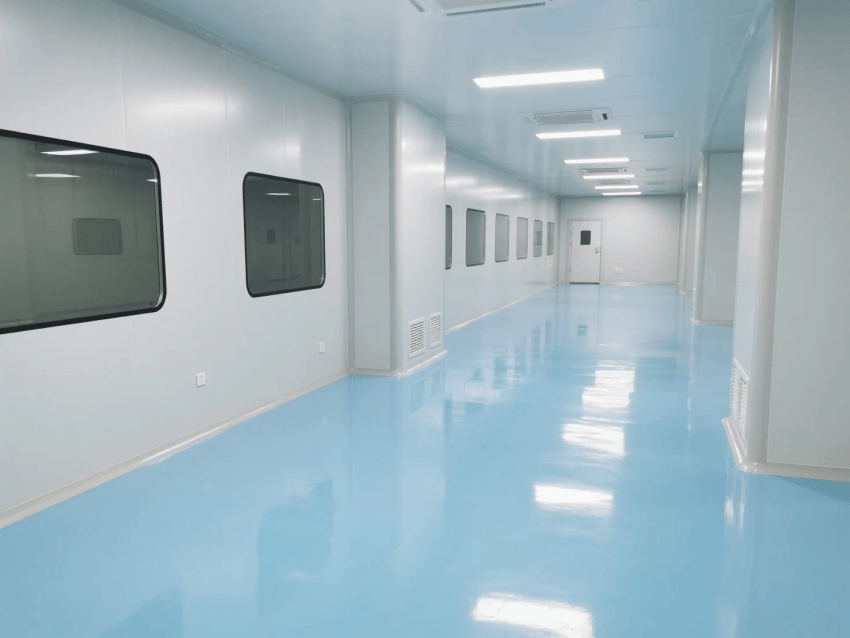 本方案依據(jù)ISO14644-1Class7(萬級)潔凈標(biāo)準設(shè)計,采用淺藍色彩鋼板與啞光白環(huán)氧樹脂墻面構(gòu)成主視覺系統(tǒng),營造科技感與潔凈度并重的生產(chǎn)環(huán)境。圍護結(jié)構(gòu)選用50mm厚雙面不銹鋼復(fù)合板,所有陰陽角均采用R50mm圓弧過渡處理,確保無衛(wèi)生死角。