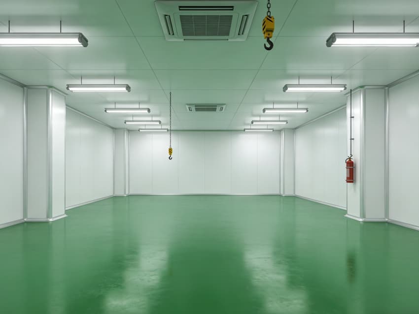 航天航空零件生產(chǎn)車間內(nèi)部施工以“超高精度、極致潔凈、抗擾穩(wěn)定”為核心,采用系列尖端工藝技術(shù),適配精密零件加工的嚴(yán)苛要求,同時(shí)實(shí)現(xiàn)地面綠色、墻壁白色的統(tǒng)一風(fēng)格。地面采用綠色防靜電耐磨環(huán)氧自流平工藝,經(jīng)基層拋丸強(qiáng)化、高滲透界面劑處理、環(huán)氧砂漿精準(zhǔn)找平、自流平罩面固化四道核心工序,表面平整度誤差控制在0.5mm/m內(nèi),防靜電性能達(dá)10?-10?Ω,抗壓強(qiáng)度超C40,可耐受精密設(shè)備碾壓與切削液侵蝕。