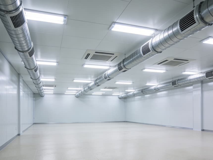 車間統(tǒng)一遵循半導(dǎo)體級潔凈標(biāo)準(zhǔn),地面為淺灰色防靜電環(huán)氧地坪,墻面采用白色無縫抗菌涂層,消除清潔死角。各車間功能精準(zhǔn)分區(qū):外延生長車間預(yù)留恒溫恒濕及氣體管路接口,適配高純度氣體輸送;光刻車間采用密閉避光設(shè)計(jì),預(yù)留高效過濾送回風(fēng)系統(tǒng);蝕刻車間強(qiáng)化耐腐蝕處理,配備排風(fēng)凈化預(yù)留接口;封裝測試車間規(guī)劃分區(qū)工位,預(yù)留精密檢測設(shè)備安裝基礎(chǔ)。