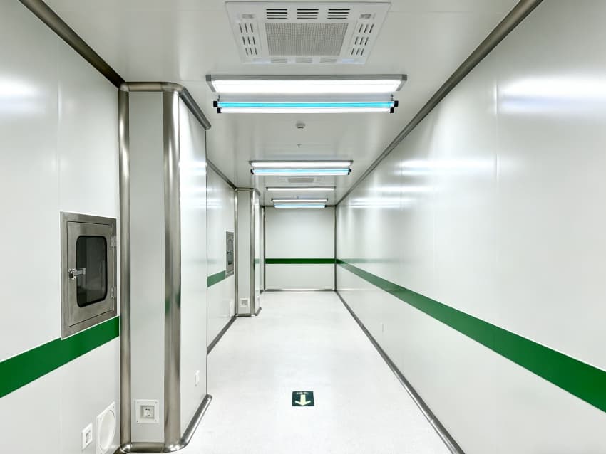 墻面用的是不容易生銹、好清潔的不銹鋼潔凈板,地面鋪的是環(huán)氧樹(shù)脂自流平材料。車間里的溫度一直保持在22℃左右(誤差不超過(guò)2℃),濕度控制在45%到65%之間。在一些關(guān)鍵區(qū)域,會(huì)保持10到15帕的正壓,這樣就能防止不同區(qū)域的藥品、原料互相污染,完全符合生物制藥的GMP規(guī)范要求。