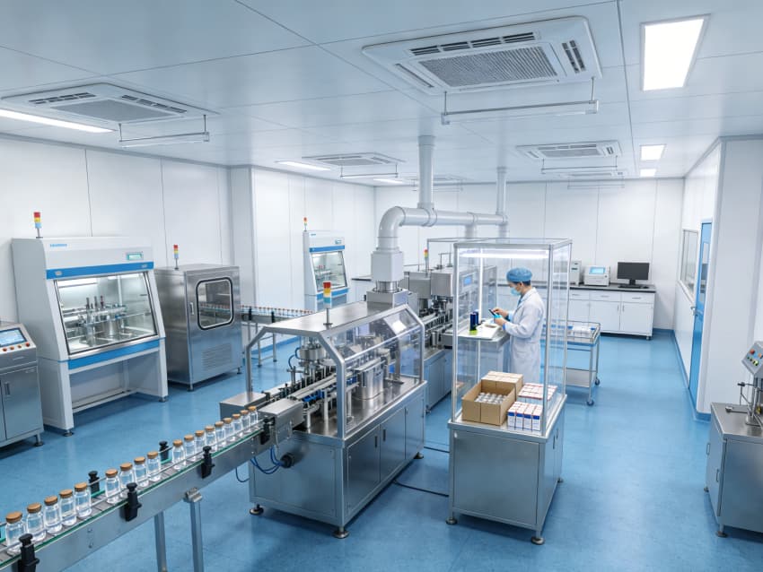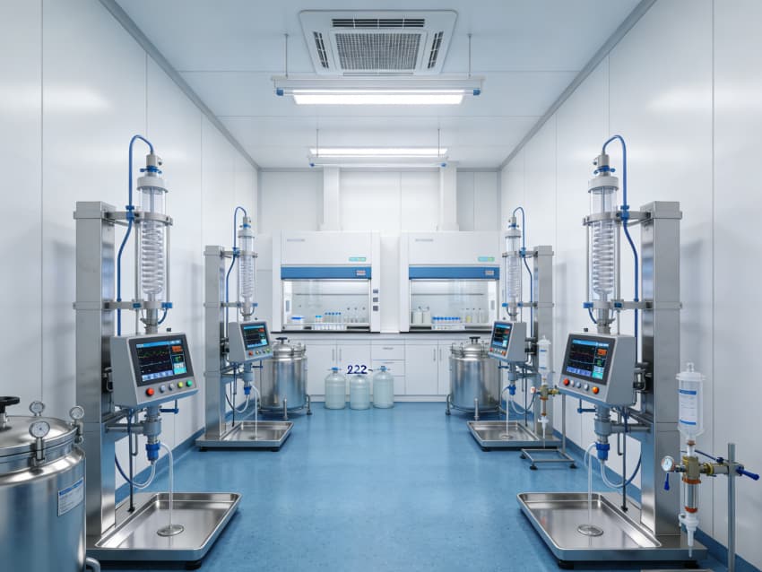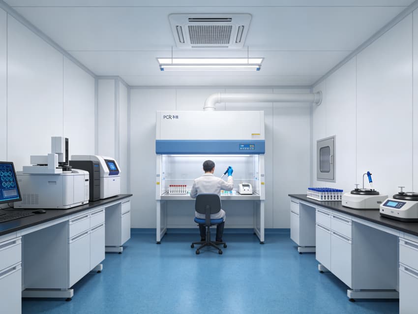 CGT醫(yī)藥研發(fā)生產(chǎn)車間內(nèi)部采用藍(lán)色地面與白色墻壁的簡約統(tǒng)一風(fēng)格,嚴(yán)格契合GMP最高等級潔凈規(guī)范,精準(zhǔn)匹配細(xì)胞治療、基因工程等研發(fā)生產(chǎn)的無菌嚴(yán)苛需求。藍(lán)色地面選用醫(yī)用級高活性抗菌環(huán)氧自流平材質(zhì),經(jīng)基層拋丸強化、抗菌底漆涂刷、環(huán)氧砂漿找平、抗菌罩面固化四道核心工序,表面平整無縫隙,具備強效殺菌特性,可耐受高頻次過氧化氫熏蒸、酒精擦拭等清潔消毒作業(yè),杜絕微生物滋生與交叉污染。
