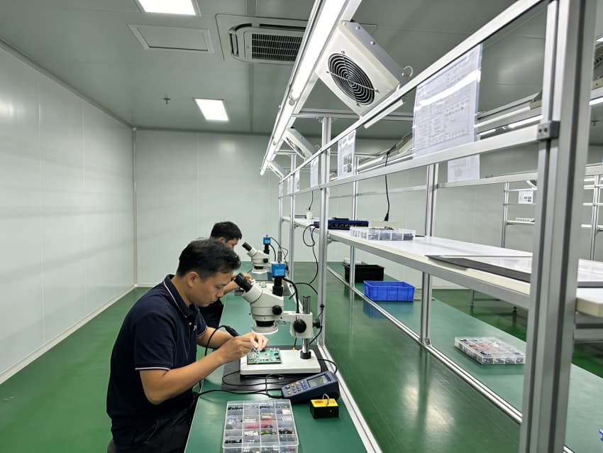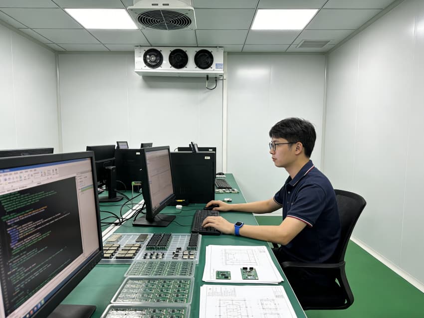 白色墻面采用高潔凈抗菌涂層,推行無縫拼接工藝,陰陽角采用圓弧倒角設計,消除清潔死角,減少粉塵堆積。車間科學劃分蝕刻區、焊接區、檢測區等功能區域,各區域均配備防靜電接地系統與精密通風裝置,蝕刻區預留廢液收集管線接口,檢測區預留高精度儀器安裝位,全方位保障電路板生產的精準性與安全性。