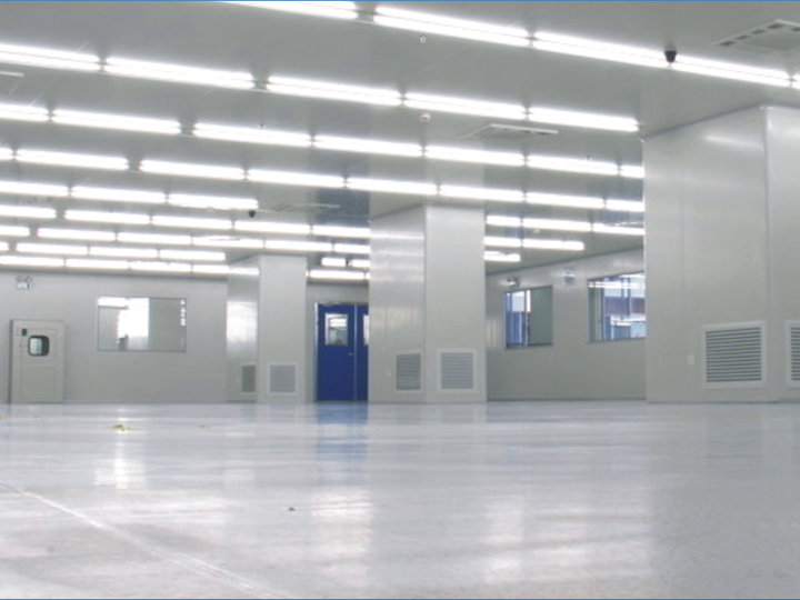 凈化廠房墻、頂板材一般多采用50mm厚的夾芯彩鋼板制造,其特點(diǎn)為美觀、剛性強(qiáng)。圓弧墻角、門(mén)、窗框等一般采用專用氧化鋁型材制造。地面采用環(huán)氧自流坪地坪,有防靜電