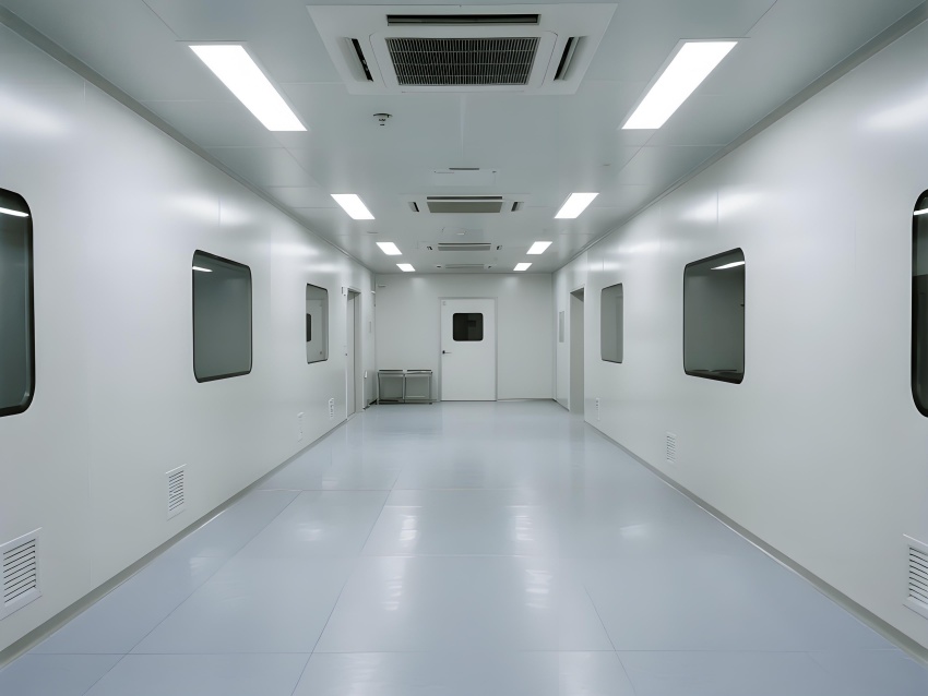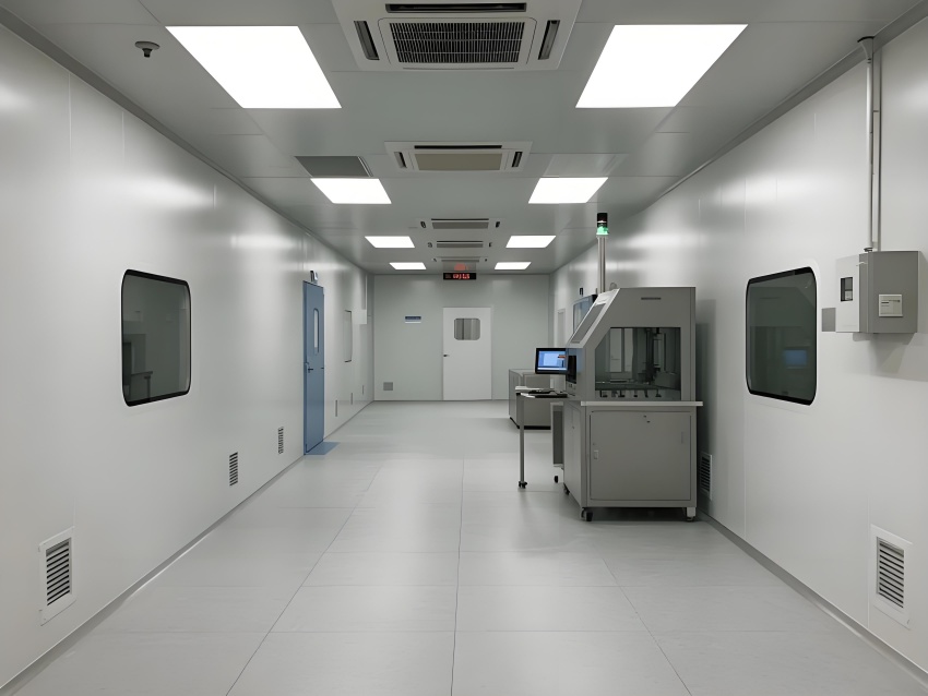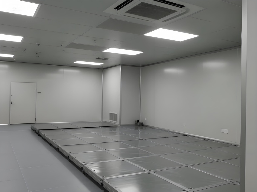 地面為導靜電高架地板系統,確保微振動控制與管線隱蔽;墻面采用航空級鋁復合板,陽極氧化處理防靜電;頂面集成ULPA超高效過濾模塊,配合負壓梯度控制氣流。